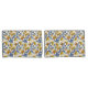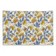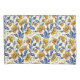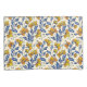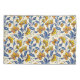 Seamless pattern of orange and yellow flowers with blue leaves on a beige background. The floral motif creates a lively, cheerful tone.