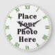 Coloque sua foto aqui relógio de parede personalizado, sua foto aparecerá atrás dos números do relógio para uma aparência verdadeiramente profissional - números clássicos roman e padrão verde-ouro
