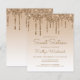 Este convite de aniversário da Trendy Sweet XVI apresenta uma borda brilhante de dourado, falsa, com gota de gota e fundo ombre. As palavras "Doce Dezesseis" e o nome do convidado de honra aparecem no guião casual de escrita manual em ouro, com o resto do texto personalizável em letra dourada sans serif. No verso aparece o mesmo design de gotejamento dourado.