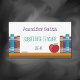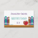 Um simples cartão de visita com livros e uma maçã vermelha. São perfeitos para pessoas que trabalham na educação (incluindo professores, professores substitutos, assessores de professores, tutores, educadores e muito mais ). O modelo facilita a personalização com seu nome, título e outras informações. Eles também estão disponíveis em preto. © ArianeC Ilustrações - Todos os direitos reservados