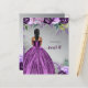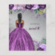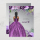 Glitter Orçamental Prateado Roxo Vestido Roxo Doce 16 Convite Aniversário. Pele escura Cabelo Preto