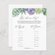 Placa de jogo de chá de panela com uma aquarela verde e suculentos roxos. Uma maneira divertida de interagir com os convidados do chá para adivinhar a idade da noiva e do noivo nas fotos. Adicione um código QR para mostrar aos convidados as fotos.