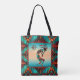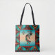 Este é um único "Um dos tipos" do sudoeste de Kokopelli e Sun Tote Bag! Ele apresenta um Kokopelli Sudoeste tocando flauta e dançando sob o sol em um fundo de turquesa e sunset laranja... cercado por uma borda sudoeste em Turquesa, Laranja e Negro! Este é um Design de Arte Original do Artista Kerry Miller.
