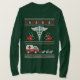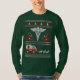 Suéter médico de férias feias com pontos de tricô simulados em branco e vermelho com árvores verdes, flocos de neve, Caduceus como símbolo de medicina, corações, estetoscópios e uma ambulância sendo puxada por três renas.