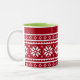 Uma caneca feia de suéter de Natal para café, chá ou chocolate quente. Engraçado ideia de presente de Natal para homens, mulheres e crianças. Vermelho e branco ou personalize as cores. Ótima decoração nórdica para o inverno. Também diversão para colegas de trabalho e funcionários no escritório corporativo.