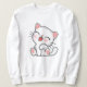 O padrão do gato é combinado com o suéter branco, que parece particularmente refinado, bonito, atmosférico e adorável.