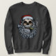 Crânio de Papai Noel com barba branca comprida, chapéu de Papai Noel, óculos redondos e chamando um charuto fumante. Desenho colorido, caneta e tinta em t-shirts, camisas de suor, cartões e artigos de presente.