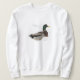 Esta camisola caracteriza um pato do pato selvagem, surpreendido muito encontrar-se cercado pela neve branca macia de uma tempestade adiantada. Seus pescoço iridescente verde bonito, bico amarelo e asas intrincada modeladas estão realmente para fora contra o todo o que branco!