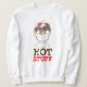O Sweatshirt apresenta uma ilustração original de um sundae delicioso de sorvete de fudge quente, com o HOT STUFF numa fonte vermelha e castanha divertida.