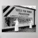 Esta foto do início do século 20, US Suffrage History, mostra mulheres colocando posters para a próxima parada como parte do movimento para garantir o direito de voto para as mulheres. Os posters faziam parte da preparação nos dias que antecederam o desfile, onde o projeto federal de emenda para o sufrágio das mulheres foi derrotado no Senado, para ser apresentado novamente no dia seguinte.