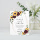 Mande aos seus hóspedes um convite elegante e rústico para o seu casamento de girassol e rosa burgundy! Perfeito para um casamento do condado no verão ou no outono, esta design captará a beleza e a faísca do seu dia especial. Crie um belo convite que fará seus convidados se sentirem bem-vindos e animados pelo seu dia especial. O verso apresenta um código QR e seu site de casamento para seus convidados para RSVP.