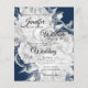Casamento Simples E Elegante "Salve A Data" Silver & Marinho de Convite Floral De Design. Excelente para casamentos glamourosos e sofisticados! Uma escolha perfeita de convite para o casamento o ano todo!