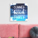Obtenha a sua impressão especial com fundo azul de pincel azul profundo com cor d'água e roteiro decorativo personalizado "festa de praia de verão"