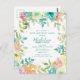 Novo para o Verão de 2024. A cor da água floral de Verão moderna e colorida apresenta flores cor-de-rosa, azuis-turquesa, amarelas e laranja. Eles formam uma estrutura botânica, rústica e bófia em torno de seus detalhes de festa de aniversário. Este item faz parte da coleção de Flores de Aquarela de Verão. Contém modelos de convite, sinais de boas-vindas e decorações de festas.
