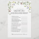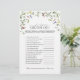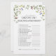 Jogo moderno e elegante de chá de panela "o que o noivo disse" com flores silvestres de verão de cor d'água, como ervilhas doces, tremoços, snapdragões, e mais, em tons brilhantes de verão de rosa, lilás, lavandas, amarelos, azuis e delicadas folhas botânicas verdes. Personalize suas perguntas em preto, acentuado com uma bela caligrafia feita à mão moderna. Parte de uma suíte coordenada. Ver suite aqui: https://www.zazzle.com/elegant_summer_wildflower_floral_bridal_shower_invitation-256486599269422892 Contacte o designer para produtos correspondentes. Copyright Anastasia Surridge for Elegant Invites, todos os direitos reservados.