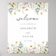 This design is perfect for spring and summer weddings, featuring a watercolor border of wildflowers in shades of red, gold, green, and blue.