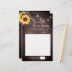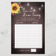 Este jogo de chá de panela é um jogo de música do amor. A anfitriã toca pedaços de músicas de amor. Os convidados escrevem o nome e o artista nos cartões. Os pontos são pontuados para cada resposta correta. O jogador com os pontos mais altos ganha um prêmio. Estes cartões apresentam um design de girassol rústico com rosas de burlu, luzes de jarro e fundo de madeira. Personalize estas cartas com o nome da noiva no verso. Itens correspondentes disponíveis.