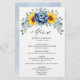 O elegante e moderno menu de casamento floral de meio verão apresenta um buquê de hidrocolorecia e hipnagas de girassol em tons de amarelo, ardósia, azul empoeirado com folhas botânicas verdes e sujas e eucalipto. Por favor, encontre mais designs e variações na minha loja de "blisswedingpaperie". E fique à vontade para me contactar para mais personalizações ou itens correspondentes.