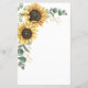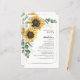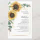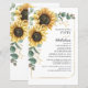 Girassol Eucalyptus Floral Script Geométrico 50º Convite de aniversário, com flores quic modernas e verde com quadro geométrico.