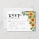 Convite de casamento Cartão RSVP com QR na parte de trás para o site de casamento em uma madeira rústica com girassóis e design de eucalipto. Ele apresenta três opções de refeições na frente com uma fonte elegante. O design apresenta uma redação formal tradicional, mas você pode personalizá-la com qualquer texto necessário.