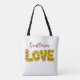 Radiate good vibes displaying this yellow sunflower "love" bag. Modify the background color to match your current style. Add or remove the text to personalize.