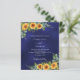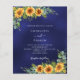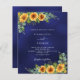 Anuncie a sua alegria com os nossos agradáveis convites para recepções de casamento! Apresentando um fundo azul marinho profundo adornado com girassóis vibrantes e elegantes eucaliptos verde, esses convites exudem charme de eterno e beleza natural. A cor azul é irregular. Personalize com seus nomes e detalhes de eventos para um toque de individualidade. Defina o tom para sua celebração com nossos incríveis convites. 1 folha = 1 convite impresso de borda a borda.