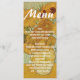 Adorável cardápio de mesa de casamento magra, com uma foto do quadro de Vincent van Gough chamado Sunflower, como fundo. Personalize todo o texto para atender às suas necessidades de recepção de casamento.