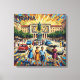 Bathed in honeyed light, this Tirana scene opens onto a lively civic square where an equestrian monument, palm-lined avenues, vintage cars, and elegant strollers create a radiant portrait of Albanian city life. Rich brushstrokes and glowing color blend historic pride, Mediterranean warmth, and travel nostalgia into one inviting canvas art piece, perfect for hotel interiors, living rooms, offices, and stylish spaces that long for culture, charm, and sunlit urban romance.