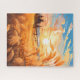 Esta quebra-cabeça apresenta uma ilustração vibrante de uma ascensão solar sobre um campo de trigo ouro num dia de vento.