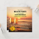 Convite de festas com um pôr do sol na praia com vidros e flores de vinho. Perfeito para uma celebração na frente da praia, como um aniversário ou uma festa de provando de vinho com vista para o excelente.