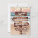 Cartão romântico de resposta ao casamento no oceano, com um pôr do sol, praia arenosa, luzes cintilantes de cordas e a sua redação Rsvp escrita num cartaz de madeira russa.