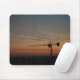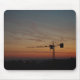 Um painel do mouse mostrando a grua de construção com o céu do pôr do sol como fundo