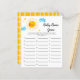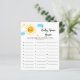 Cartão de jogo "baby name" do tema do sol, bonito, com ilustração aquosa de um sol com nuvens e estrelas. Os textos são editáveis. Um jogo perfeito para jogar durante o chá. aos hóspedes para anotar nomes de bebês que começam com cada alfabeto. Quem termina todos os alfabetos primeiro ganha!