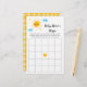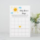 Cartão de atividade do chá de fraldas de tema Sunshine. Divirta-se no seu chá de fraldas com este cartão de jogo bingo. Ilustração de um sol com nuvens e estrelas em aquarela. O jogo de bingo aos hóspedes para adivinhar quais os presentes que as mamães irão receber. Ilustração original e design do Namibear Art Studio. ©BELGA_REDE
