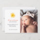 Anuncie a chegada do seu bebê com o nosso tema ensolarado e cartão com fotos de nascimento de nome grande