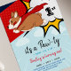Celebre seu pequeno aniversário com nosso Convite de festas Pawty. Designs apresentam um corgi voador giro em um fundo azul pastel editável. Este primeiro convite de aniversário para um super-herói para cães é perfeito para a sua pequena festa de aniversário, a sua festa de aniversário para cães, a sua festa de aniversário de corgi ou um chá de fraldas temático para filhotes.