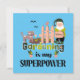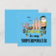 Uma bela ilustração de jardinagem mostrando uma cerca, um gnomo, um gato e dois adoráveis rabanetes, e uma mensagem dizendo: Jardinagem é meu super poder.