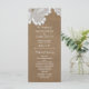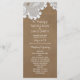 Suporte de Cartão para Programa de Casamento de Renda Branca e Marrom Rústico. Itens correspondentes disponíveis.