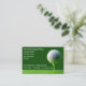 Treinamento e cartão de visita de golfe em um simples modelo de design personalizado com um gráfico de uma bola de golfe em um campo de golfe e um layout simples que você pode personalizar on-line.