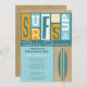 Cowabunga! É um estilo de SoCal do chá de fraldas do surf! Este surf retro acima do convite é o perfeito procura seu chá de fraldas para comemorar seu surfista pequeno na maneira! Assim, saia de seu melhor vestuário de Gidget, agarre seu conselho, e obtenha-o pronto para algum divertimento do surf.
