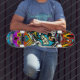 Arrume este skate elegante e colorido o mais rápido possível! Trabalho de arte personalizado selecionado perfeitamente para sua aparência agressiva.
