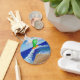 (A pintura é de um anjo verde em uma prancha laranja capturando uma onda. Um sol brilha no fundo e palmeira suavemente se move na praia. A onda está se preparando para cair na praia, suavizando a superfície arenosa. O anjo verde homenageia o Arcanjo Raphael, cuja cor é verde e é conhecido por trazer cura. O sol ajuda a sustentar a vida e através dela plantas como palmeiras se fortalecem e crescem. O poder da energia solar é simbolizado na placa de surfe amarelo-alaranjada. A praia é limpa e suave. Esta pintura foi inspirada pelo "Anjo de Cancer de Limpar". Em vez de adicionar texto a esta pintura, ela foi deixada em aberto para que você possa limpá-la, cavalgar a onda, ou outro ir com mensagem de fluxo para a praia, nuvem ou céu.