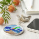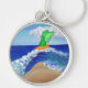 (A pintura é de um anjo verde em uma prancha laranja capturando uma onda. Um sol brilha no fundo e palmeira suavemente se move na praia. A onda está se preparando para cair na praia, suavizando a superfície arenosa. O anjo verde homenageia o Arcanjo Raphael, cuja cor é verde e é conhecido por trazer cura. O sol ajuda a sustentar a vida e através dela plantas como palmeiras se fortalecem e crescem. O poder da energia solar é simbolizado na placa de surfe amarelo-alaranjada. A praia é limpa e suave. Esta pintura foi inspirada pelo "Anjo de Cancer de Limpar". Em vez de adicionar texto a esta pintura, ela foi deixada em aberto para que você possa limpá-la, cavalgar a onda, ou outro ir com mensagem de fluxo para a praia, nuvem ou céu. Produto da venda deste chaveiro de apoio DonnaBellas Angels, uma instituição de caridade sem fins lucrativos 501(c)3.