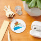Um buldogue estilo cartoon cavalgando uma prancha de surfe em uma onda. Esta design parece realmente eficaz nestes Chaveiro
