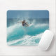 Mousepad com um surfista profissional que surfa seu conselho em uma onda grande no encanamento do Banzai, costa norte, Oahu, Havaí.