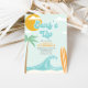 Sobe! Surfing Beach convite com ondas de turquesa e conselho de surf laranja.