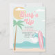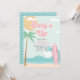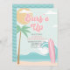Surfs! Surfing Beach convite com ondas de turquesa e conselho cor-de-rosa.