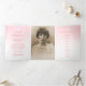 Ordem de serviço do programa funerário de rosa branco rosa e branco branco cor-de-rosa macio em memória amorosa triplicada de 6 páginas com três fotos do programa funerário. Um programa elegante onde você pode simplesmente substituir o texto de exemplo e as fotos por suas próprias fotos e detalhes do serviço de memorial. Fotografia de design e rosa por Sarah Trett. www.sarahtrett.com para www.mylittleeden.com (Fotos são imagens marcadoras para você substituir por suas).