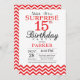 Surpreenda o 15o convite do aniversário com Chevron vermelho. Preto e branco. Aniversário de criança. O menino ou a menina Bday convidam. Para uma personalização mais adicional, clique por favor "personalizam-no" botão e usam-nos nossa ferramenta de design para alterar este modelo.