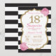 Surpreenda o 18o convite do aniversário. Pique o preto e o ouro. Brilho Dourado. Listras preto e branco. Flor floral cor-de-rosa. Aniversário adulto. Festa de aniversário das mulheres. Para uma personalização mais adicional, clique por favor "personalizam-no" botão e usam-nos nossa ferramenta de design para alterar este modelo.